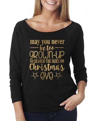 May You never be too grown up to search the skies on Christmas Eve 3/4 long sleeve, Chistmas Shirt, Christmas Sweater, Christmas Sweatshirt