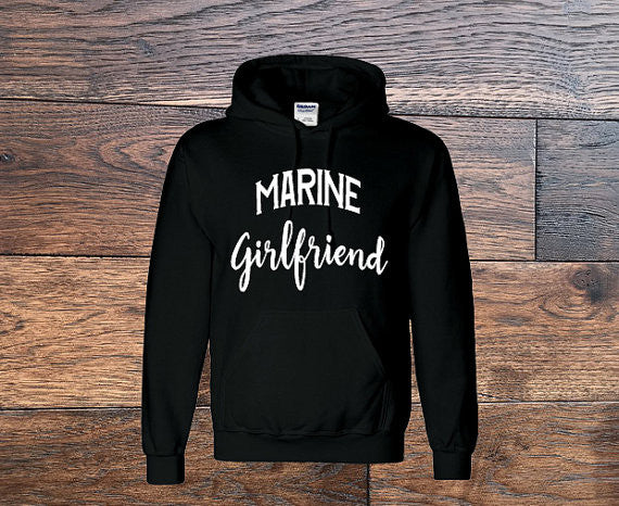 Perfect Hoodie for any Marine Girlfriend! Made with professional grade heat transfer vinyl and is great for yourself or could make a perfect gift as well!